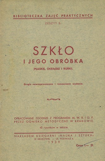Szkło i jego obróbka : (płaskie, okrągłe i rurki). - 2 nowooprac. i rozsz. wyd. - Kraków : Księgarnia "Nauka i Sztuka", 1939. - 46, [1] s. : il. ; 23 cm.