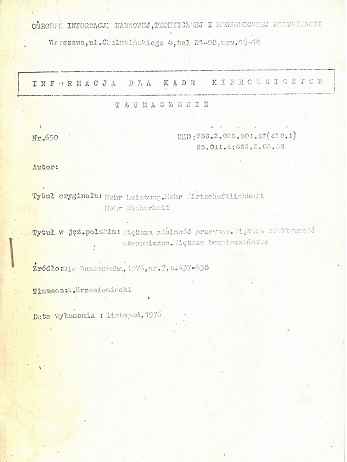 (Ośrodek Informacji Naukowej, Technicznej i Ekonomicznej Komunikacji ; 650)