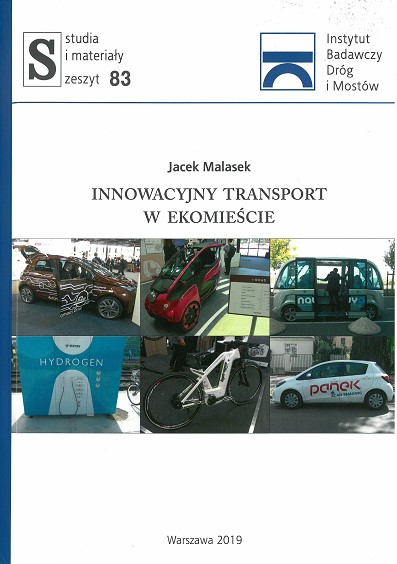 Innowacyjny transport w ekomieście / [Jacek Malasek]. - Warszawa : Instytut Badawczy Dróg i Mostów. Dział Wydawnictw i Informacji, 2019. - 355, [5] stron : fotografie, ilustracje, mapy, wykresy ; 25 cm.